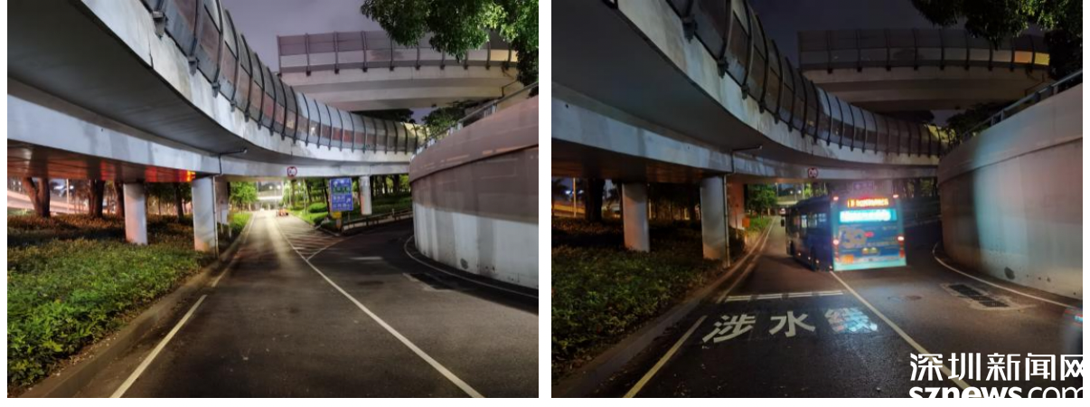 深南東路東行建設橋下涉水線施工前后對比