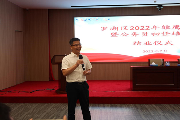 結業儀式上,區委組織部常務副部長高延勇對此次羅湖區“雛鷹訓練營”取得的成效給予了充分肯定,對各位學員通過一個月培訓取得的進步和成長表示了祝賀,并從5個方面對羅湖“雛鷹”提出了殷殷期望:一是提高政治意識,把自身工作融入到區委區政府中心工作中去,強化責任心,增強年輕干部使命感;二是爭做“先鋒者”,積極踐行羅湖“先鋒精神、奮斗文化”,敢于爭先,勇于擔當;三是增強創新創造意識,發揮年輕人的優勢,多做“無中生有”的事情,多做示范引領的工作;四是提升戰略思維,胸懷“國之大者”,善于從大局出發思考問題、謀劃工作;五是保持廉潔自律,從入職一開始就緊繃廉潔從政這根弦,努力成為心中有“秤”的年輕干部。