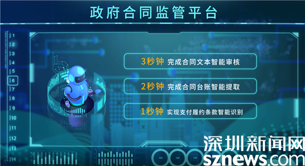 推行改革后,羅湖搭建了全國首個智慧化政府合同履約監管平臺,全面納管黨政機關、學校、醫院等205個財政預算單位,實現政府合同“全生命周期”信息化。平臺充分運用科技手段實現“智慧化”,運用最新的智能語義分析技術,對合同的合規性、嚴重風險、一般風險、缺失條款四大方面1093項風險進行智能檢測,形成羅湖監管模式“321”效率,即3秒鐘完成合同文本智能審核、2秒鐘完成合同臺賬智能提取、1秒鐘實現支付履約條款智能識別,及時發現并提示風險,提高政府治理數字化智能化水平。