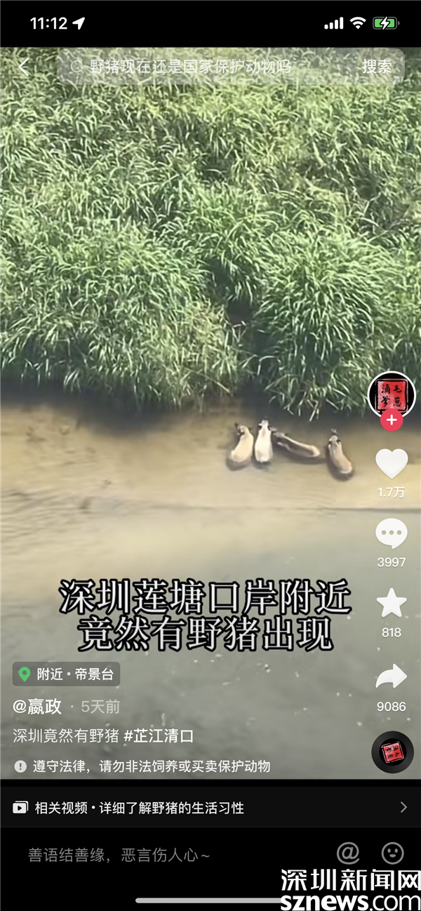 記者咨詢蓮塘街道和羅湖區(qū)城市管理綜合行政執(zhí)法局相關(guān)負責人表示,此次野豬出沒的地點的是在口岸對面,不屬于深圳管轄的范圍。此前,在仙湖植物園和梧桐山風景區(qū)也頻現(xiàn)野豬身影。
