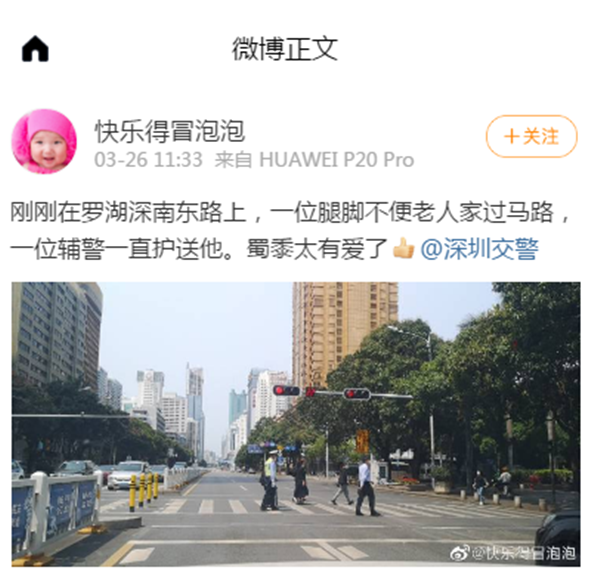 羅湖交警護送老人過馬路 網友點贊:蜀黍太有愛了!