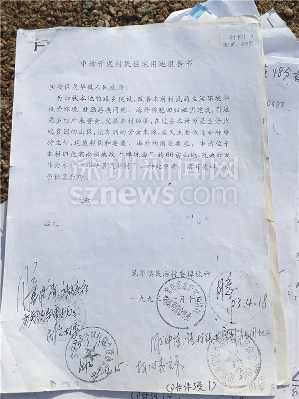 1993年龍華民治村委樟坑村申請開發村民住宅用地的報告書