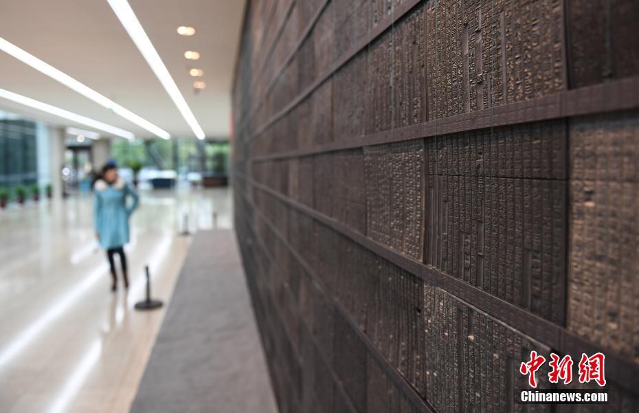 3月7日,《西湖志》刻本墻吸引當(dāng)?shù)厥忻耨v足。近日,中國水印版畫大展在浙江杭州展出,各類水印版畫作品集中亮相,呈現(xiàn)千年民族藝術(shù)之美,展現(xiàn)“東方智慧”。中新社記者王剛 攝