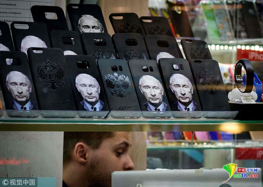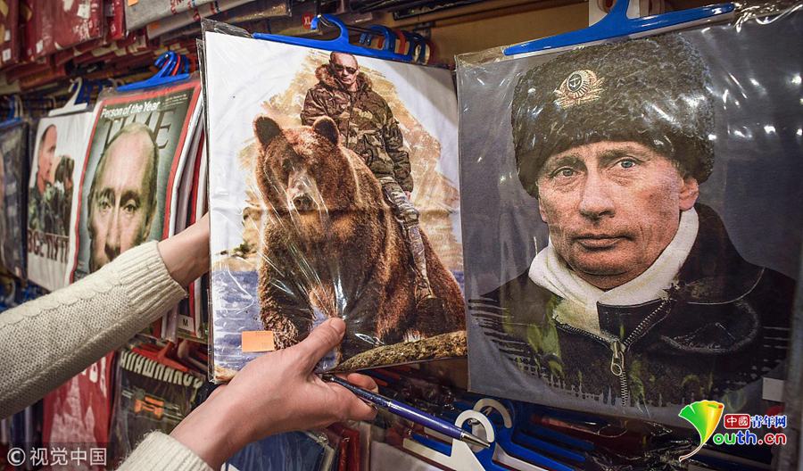 當地時間2018年3月13日,俄羅斯莫斯科,俄羅斯大選將于3月18日舉行,大選主題紀念品熱賣。