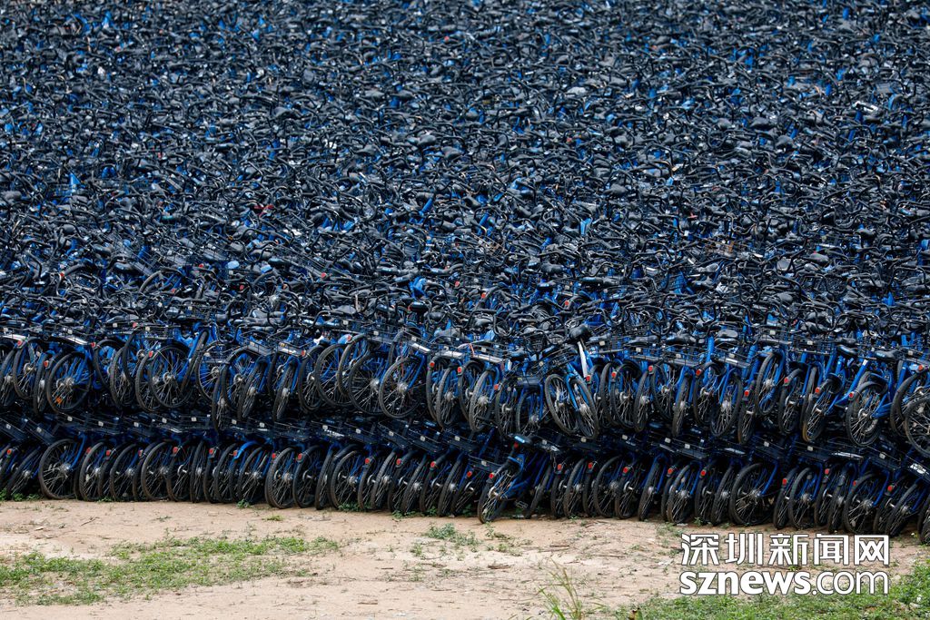 圖為深圳市場投放的小藍單車目前都集中存放在龍崗區某處
