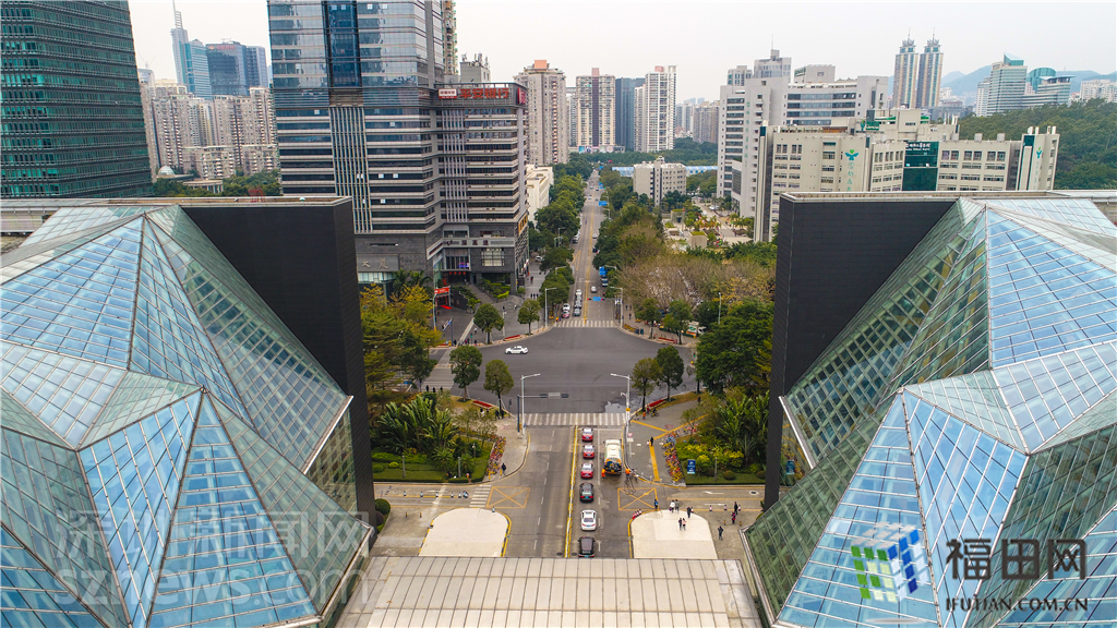 市民中心正面是市民廣場,再往前即是深南大道和中央商務區。