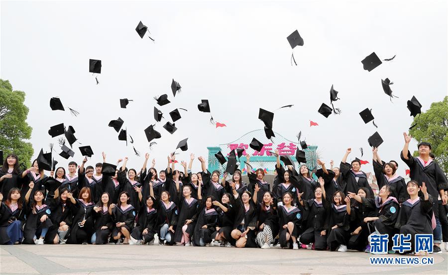 6月10日,畢業生們在歡樂谷廣場上拍合影。