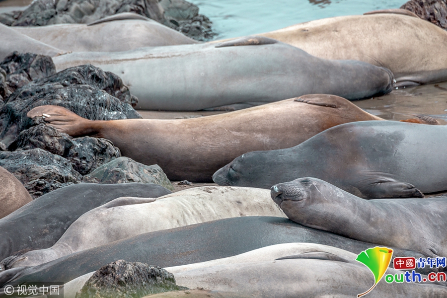 美國加州,阿根廷攝影師Lucio Moujan鏡頭下的圣西蒙海灘,整個海灘被陽光下午睡的象海豹占領。攝影師說道,“那里大概有數百只象海豹吧,我不知道具體數目,但是那有一大群。