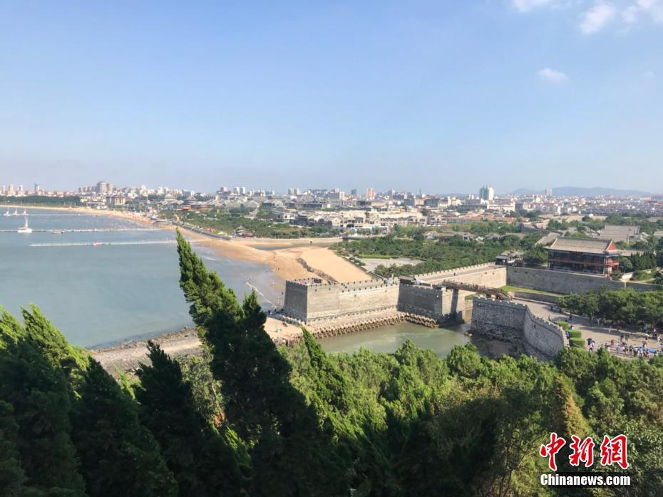 7月16日,記者探訪了山東省蓬萊市蓬萊閣。蓬萊閣是中國古代四大名樓之一,素有“人間仙境”之美譽。傳說曾有神仙出沒于此,秦始皇曾命人在此尋求“長生不老”之藥。蓬萊閣建于丹崖極頂,建筑凌空,海霧氤氳,居身其中,恍如身處仙境?!鞍讼蛇^海”的傳說亦源于此地。在蓬萊閣主閣二層,登臨遠眺,蓬萊盡收眼底。中新網記者梁美辰 攝