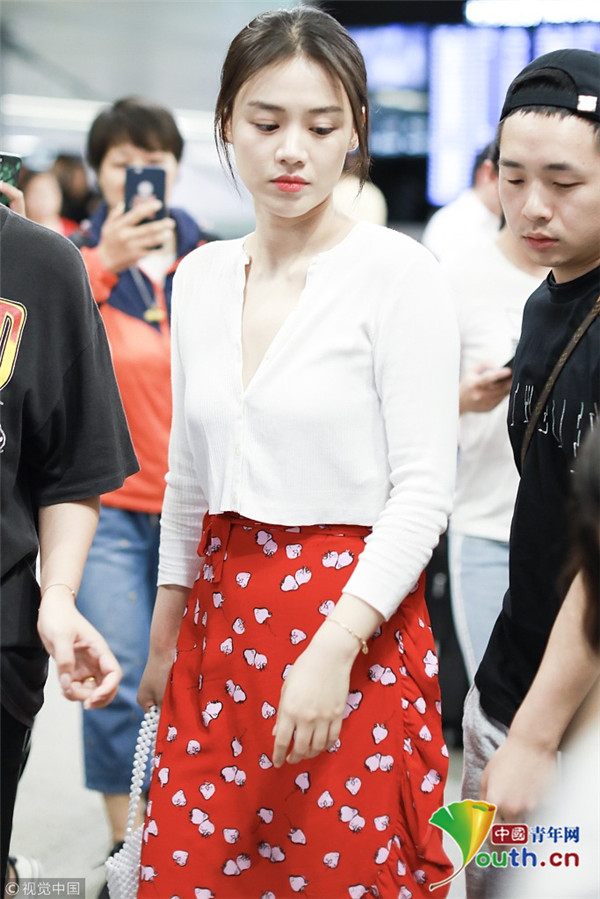 2018年7月31日,“水月”馬思純從北京飛往上海現身機場,她身穿草莓圖案大紅裙,手提櫻桃小竹籃,造型清新甜美,搭配深V白襯衫,美胸若隱若現,平添小性感。