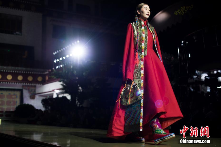 8月12日晚,由西藏職業技術學院與北京服裝學院共同打造的“凈美雪頓·美好生活”西藏民族服裝與服飾展演活動在拉薩舉行。現場通過傳統篇、現代篇與未來篇三個篇章,展演了藏族傳統服裝26套,設計創新服裝58套,共計84套服裝。圖為模特展示現代設計的創新藏族服飾。中新社記者何蓬磊 攝