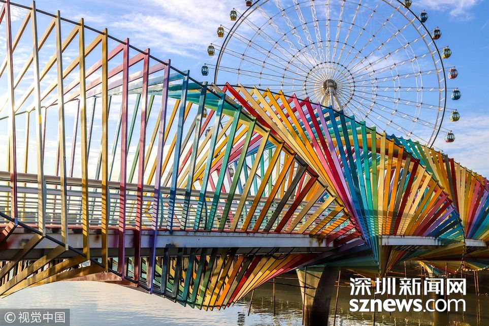 ????深圳新聞網訊? 2018年9月5日,山東青島,西海岸新區為唐島灣公園量身定制的“七彩橋”驚艷亮相,整個橋身色彩斑斕,造型別致。