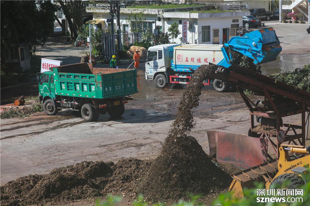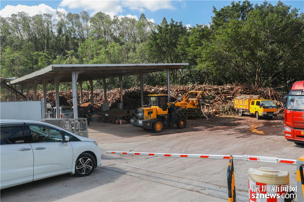 據了解,9月15日臺風到來前,組織運營單位深圳鐵漢生態公司對全場車間及工人宿舍進行加固,機器設備進行維護保養,騰出場地準備接收被臺風刮斷送來的樹枝。16日臺風來時,敞開大門接收樹枝,用LED廣告牌發布通知,優先接收綠化處管養的深南、北環、濱河、濱海、南坪快速等主干道樹枝。
