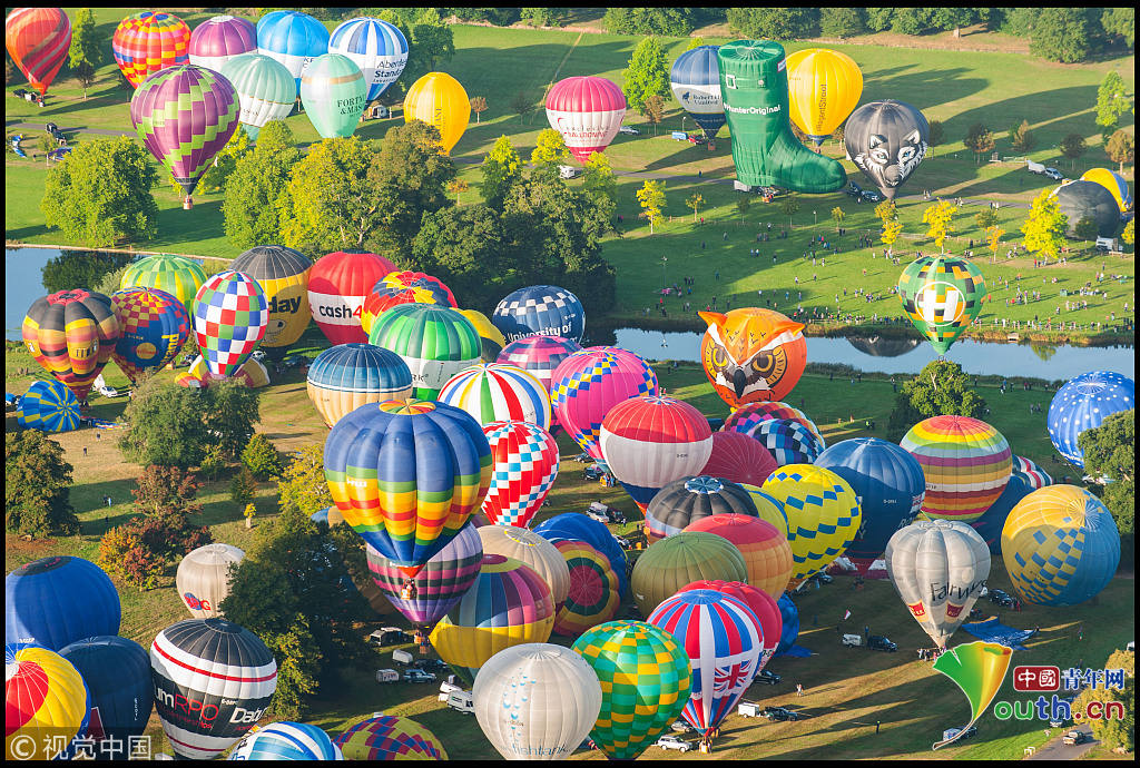 形態各異、顏色鮮艷的熱氣球一同升空,非常壯美。