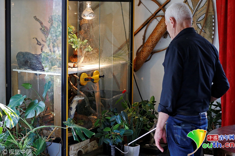 除蜥蜴和鱷魚散養外,Philippe Gillet專門有毒的眼鏡蛇蜘蛛等制作了“起居室”。