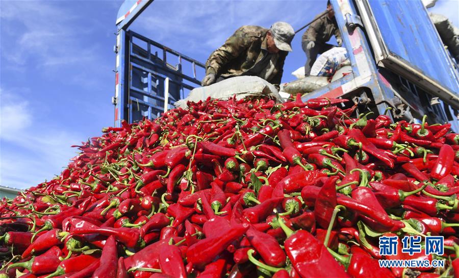 9月16日,阜城縣王集鄉(xiāng)南張莊村農(nóng)民在搬運(yùn)采摘的辣椒。近年來,河北省阜城縣王集鄉(xiāng)在推進(jìn)產(chǎn)業(yè)富民過程中,積極引導(dǎo)農(nóng)民調(diào)整農(nóng)業(yè)產(chǎn)業(yè)結(jié)構(gòu),按照品種特色化、種植規(guī)模化、產(chǎn)銷一體化的“公司+基地+農(nóng)戶”的經(jīng)營模式,鼓勵(lì)農(nóng)民發(fā)展特色辣椒種植,推行“訂單種植”模式,開辟出了一條農(nóng)民創(chuàng)收新路徑。目前,阜城縣王集鄉(xiāng)辣椒種植面積3100余畝,每畝年收益2500元以上,帶動當(dāng)?shù)剞r(nóng)民實(shí)現(xiàn)增收。新華社記者朱旭東攝