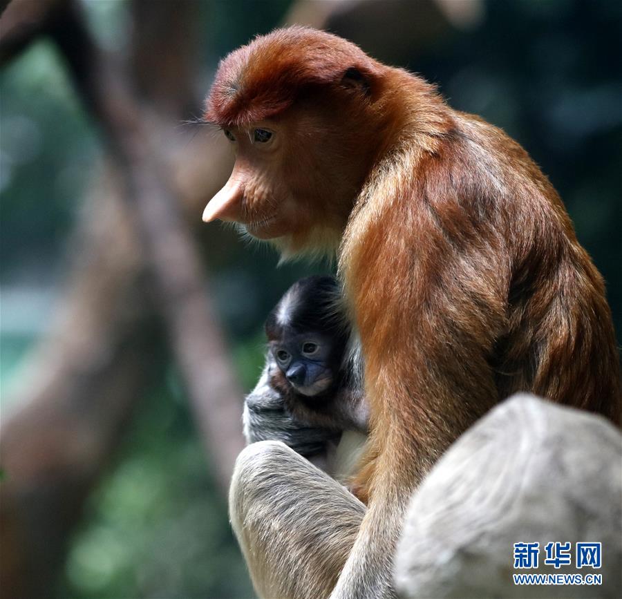 當日,廣州長隆野生動物世界的珍稀大鼻猴寶寶亮相。它于9月2日在長隆出生。2017年9月,長隆從印度尼西亞成功引進國內首批大鼻猴。 新華社記者 黃國保 攝