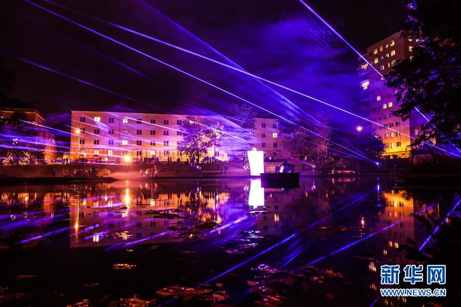 這是9月28日在波蘭羅茲市中心拍攝的2018“舞動”燈光節現場。2018“舞動”燈光節于9月28日至30日在波蘭中部交通樞紐城市——羅茲市舉行,各式各樣的光影表演在這座城市的各個角落同時上演,組成了一場如夢如幻的大型燈光秀。新華社記者陳序攝