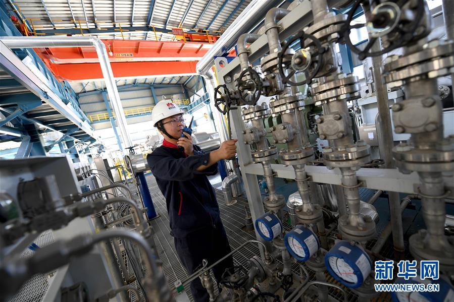 延安煤油氣資源綜合利用項目甲醇制烯烴中心的工作人員進行設備巡檢(9月28日攝)。新華社記者劉瀟攝