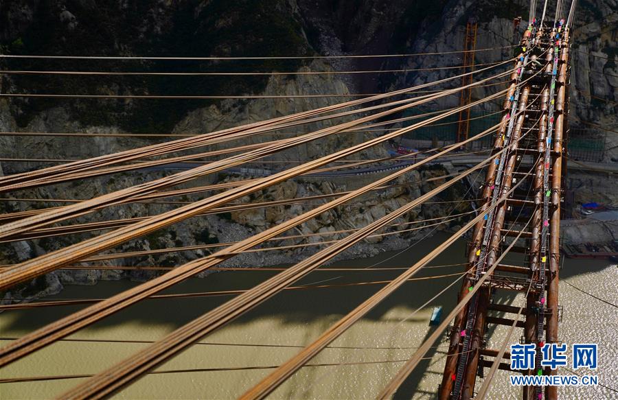 9月28日拍攝的川藏鐵路拉林段重點(diǎn)標(biāo)志性工程藏木特大橋。 當(dāng)日,隨著最后一節(jié)鋼管拱的對(duì)位和鎖定完畢,川藏鐵路拉林段藏木特大橋成功合龍,標(biāo)志著大橋主體結(jié)構(gòu)施工取得了關(guān)鍵性勝利。藏木特大橋由中國(guó)中鐵廣州局集團(tuán)承建,拱高112米,橋橫跨雅魯藏布江峽谷,水深66米。 新華社記者普布扎西攝