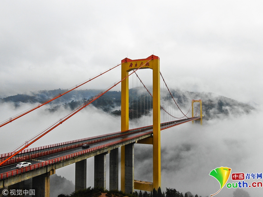 10月9日消息,普立大橋搭建在北盤江上,連接貴州都格與云南普立,北盤江兩岸風光十分秀美,兩省雖然沒有開發專門的旅游線路和風景區推薦,可是秀麗的喀斯特風光總吸引一些專門尋找原生態自然風光的游客。圖片來源:視覺中國