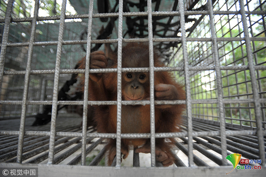 當(dāng)?shù)貢r(shí)間2018年9月18日,印尼加里曼丹克塔邦,國際動(dòng)物救援(IAR)猩猩安全與保護(hù)中心里。圖片作者:Newscom