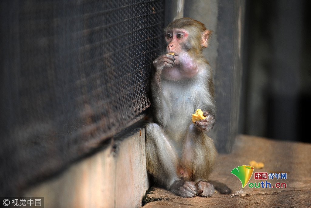 2016年9月15日,武漢動(dòng)物園,獼猴品嘗特制月餅。
