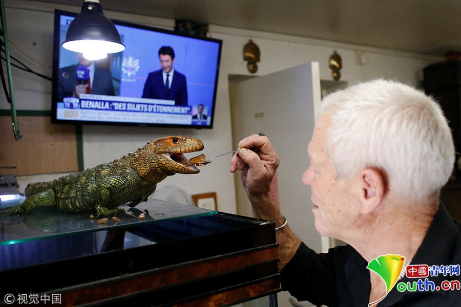 中國青年網(wǎng)北京9月21日電 當(dāng)?shù)貢r(shí)間2018年9月19日,法國67歲的法國男子Philippe Gillet與400多只爬行動(dòng)物生活在一起,有鱷魚、蜥蜴、眼鏡蛇等等。