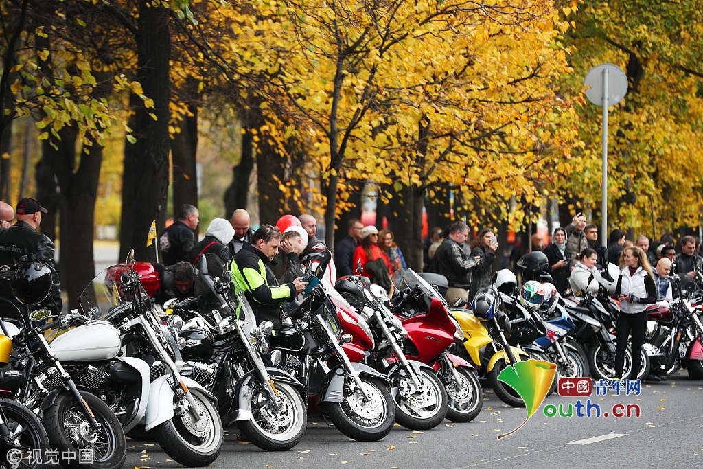 當地時間2018年10月13日,俄羅斯莫斯科,當地舉行摩托車游行。