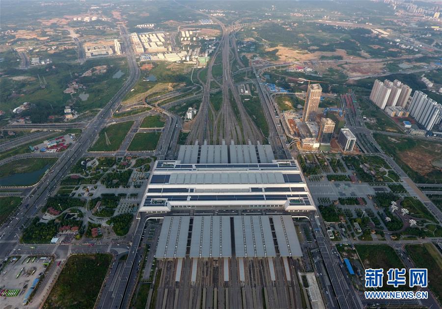 這是“零換乘”立體綜合交通樞紐——廣西南寧東站(9月4日無人機拍攝)。 廣西壯族自治區成立60年來,鐵路建設發生翻天覆地的變化。來自中國鐵路南寧局集團有限公司的數據顯示,1958年廣西鐵路總里程為1346.3公里,如今廣西鐵路總里程達5191公里。廣西與周邊相鄰省份間實現動車“公交化”開行。此外,北部灣港—重慶班列、東盟海產品冷鏈班列、“百色一號”果蔬專列等的開通和運營,強化了鐵路供給的針對性和有效性。鐵路成為助推廣西經濟社會快速發展的“大動脈”。 新華社記者陸波岸攝