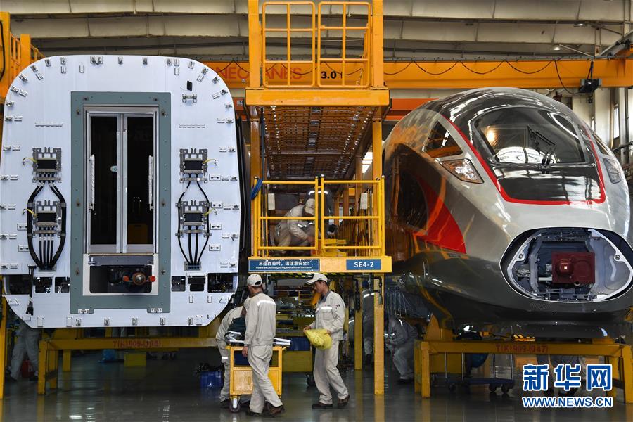 2018年5月10日,“復興號”動車組在總裝生產線上裝配。新華社記者 李紫恒 攝