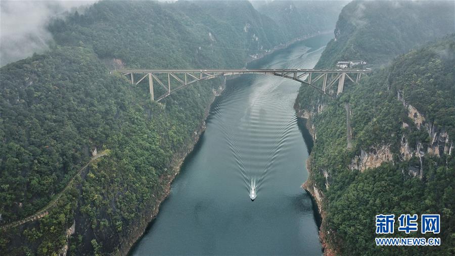 10月18日無人機航拍的江界河大橋。 當日,位于貴州甕安縣的江界河大橋云霧環繞,景美如畫。 新華社記者歐東衢攝
