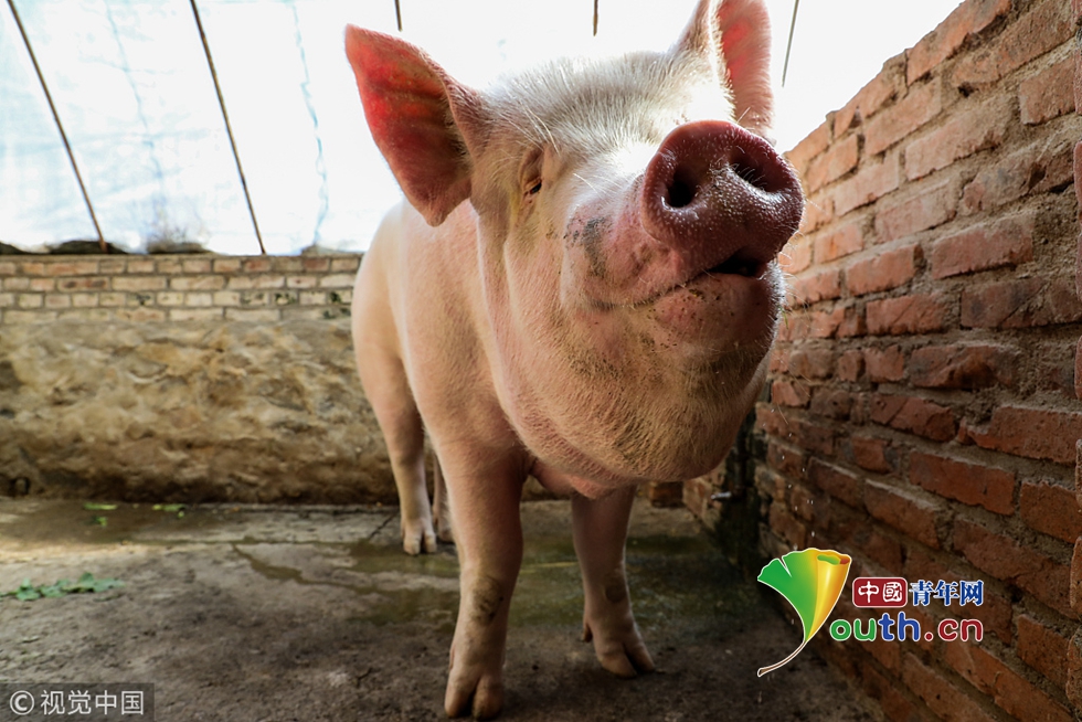 這頭豬張先生養了將近2年,完全是高標準飼養,基本不沾飼料,就指望著長到千斤左右一鳴驚人。沒想到今年豬瘟疫情波及到了養豬戶,目前這頭900斤大豬完全沒有銷路。因為體態巨大,900斤大豬動輒就要跪著休息。將近2年,這頭豬能長到900斤,張先生可是沒少花費心血,現如今只能守著大豬一籌莫展。張先生說,沒人敢買,愁也沒用,挺著吧。圖為900斤大豬昂首挺立。