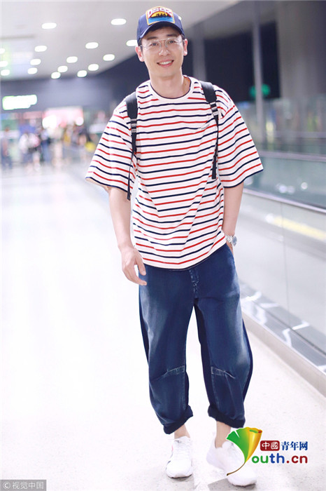2018年10月22日,上海,朱亞文現身機場。他頭戴棒球帽,身穿條紋短袖搭配休閑哈倫褲顯得年輕又時尚,立減十歲大叔變潮男,單手插袋抿嘴略顯痞氣。