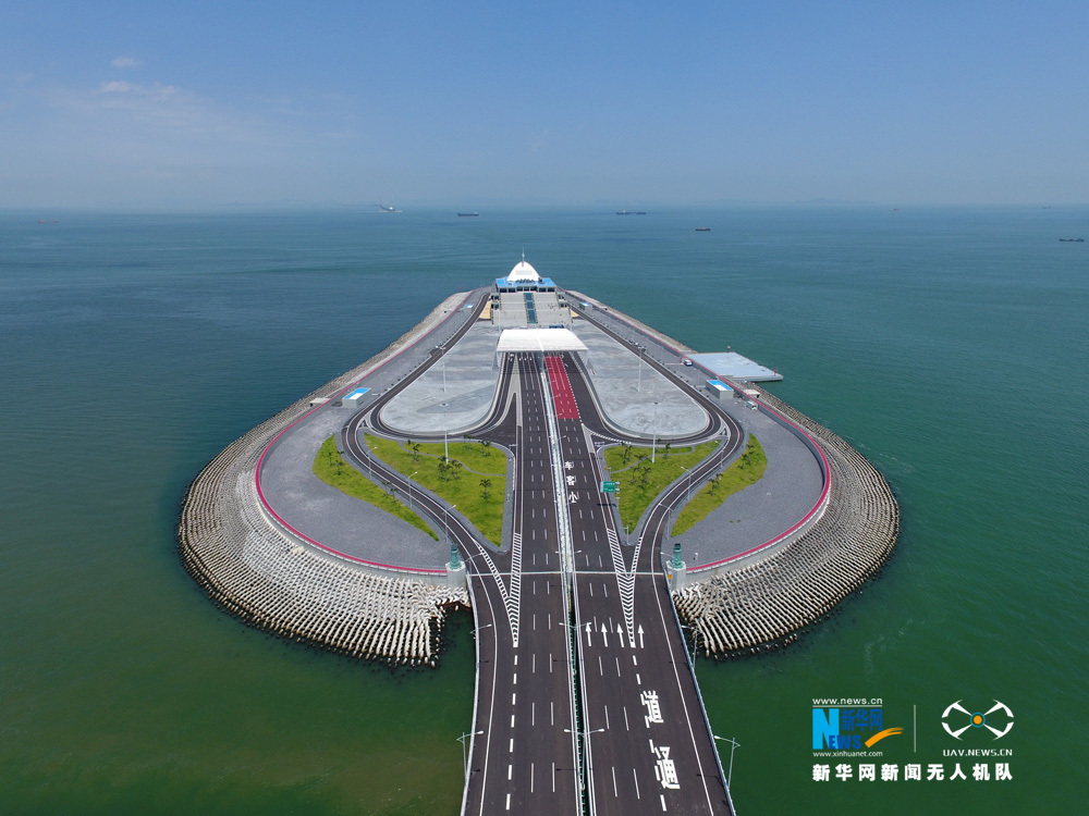 港珠澳大橋開通儀式23日上午在廣東珠海舉行。港珠澳大橋跨越伶仃洋,東接香港,西接廣東珠海和澳門,總長約55公里,是粵港澳三地首次合作共建的超大型跨海交通工程。