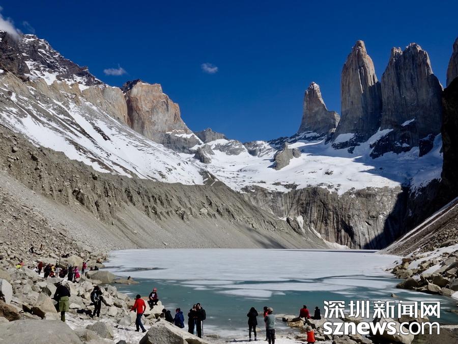 百內國家公園內的三塔峰是智利乃至南美洲久負盛名的徒步旅游景點。三座塔峰兀然聳立,海拔高度都在2200米以上,方圓幾十公里之外都能看到它們的倩影。這個景點對全球戶外旅游愛好者有著非凡的魅力。徒步愛好者歷經10小時征服三塔峰,拍下沿途美景。李仁奇 攝