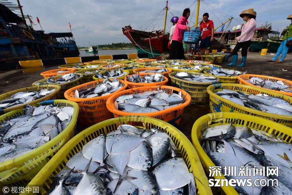 今秋海南開漁以來,南海不時出現風雨天氣,給漁業生產帶來影響。近日,隨著天氣的好轉,海南漁民加緊出海捕撈作業。當日,一艘艘漁船陸續返港卸下漁貨,源源供應各地市場。