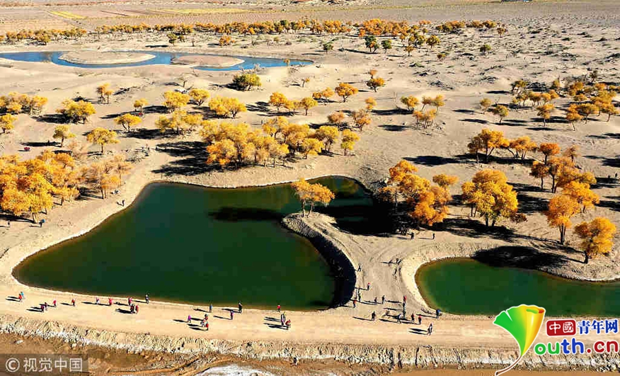 中國(guó)青年網(wǎng)北京10月9日電 2018年10月7日至8日,內(nèi)蒙古自治區(qū)阿拉善盟額濟(jì)納旗,地處巴丹吉林沙漠。額濟(jì)納河兩岸壯觀的胡楊林堪稱(chēng)大漠的一顆綠色明珠,每年深秋時(shí)節(jié)的第一場(chǎng)秋霜過(guò)后,大片的胡楊樹(shù)葉由綠變黃,一眼望去,陽(yáng)光下金色的樹(shù)葉襯著湛藍(lán)的天空于風(fēng)中婆娑起舞,鮮明的影調(diào),亮麗的色彩,令人流連忘返。