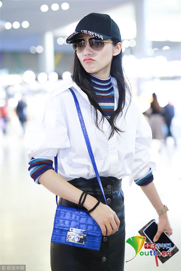 2018年10月28日,上海,韓雪現(xiàn)身機(jī)場。她穿裹身皮裙秀長腿、身姿,架黑超帥氣邁步遛機(jī)場,衣品氣場雙開掛,自提行李過安檢全程甜笑展親和。