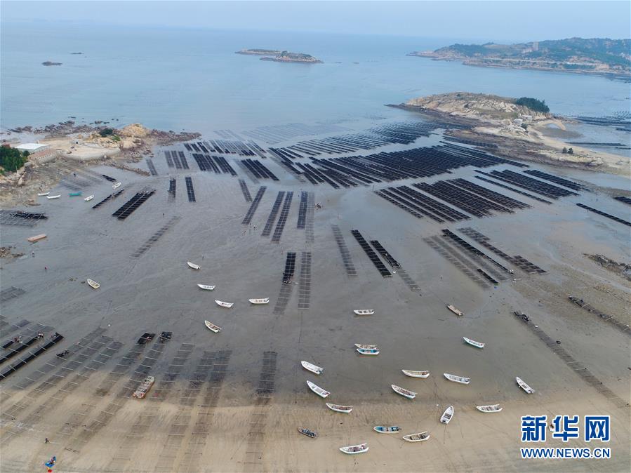 福建莆田蔣山村的千畝紫菜種植基地(10月24日無人機拍攝)。 新華社記者姜克紅 攝