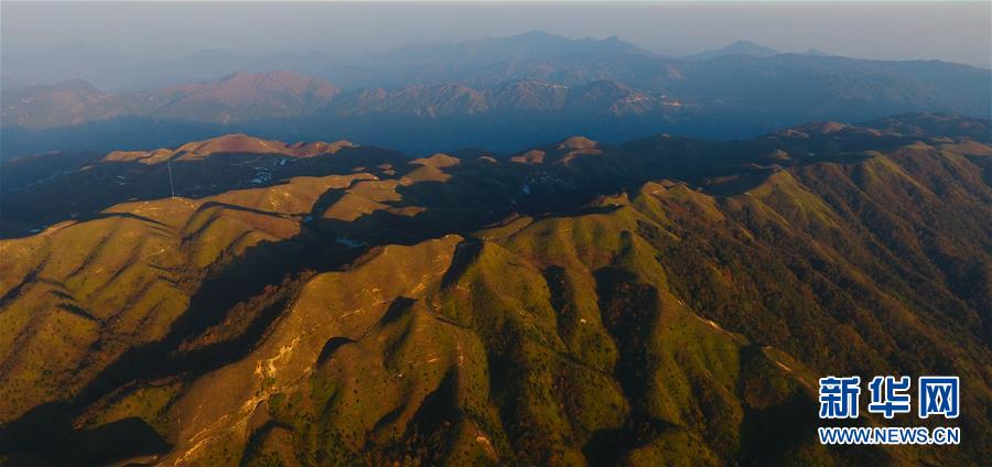 夕陽下的摩天嶺草場(11月2日無人機拍攝)。金秋時節,廣西融水苗族自治縣桿洞鄉堯告村的摩天嶺草場天高云淡,景色迷人。新華社記者周華攝