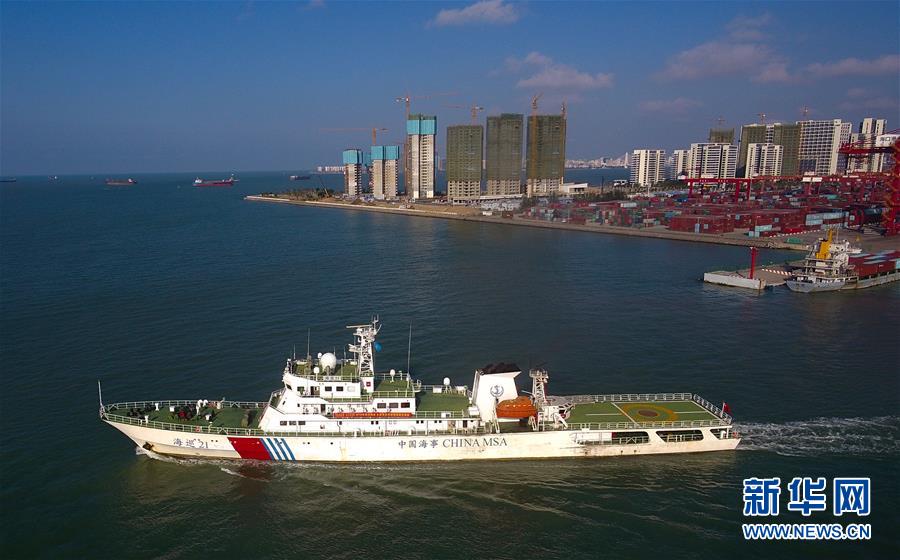 11月3日,“海巡21”輪準(zhǔn)備出發(fā)。當(dāng)日,隨著“海巡21”輪緩緩駛離海口海事監(jiān)管基地碼頭,由瓊桂粵海事部門共同開展的瓊州海峽、北部灣及環(huán)海南島水域跨轄區(qū)聯(lián)合巡航執(zhí)法活動(dòng)揭開序幕。新華社記者楊冠宇攝