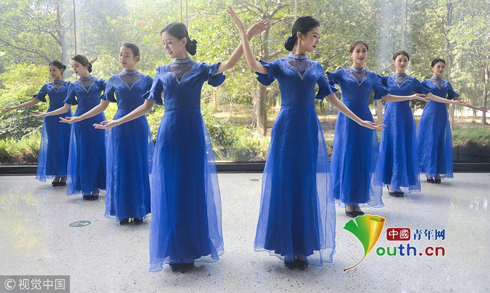 2018年10月15日,杭州,第五屆世界互聯(lián)網(wǎng)大會召開在即,來自浙江傳媒學院的禮儀志愿者們正在進行緊張有序的集中訓練。圖片作者:浙江日報 馮賀/視覺中國