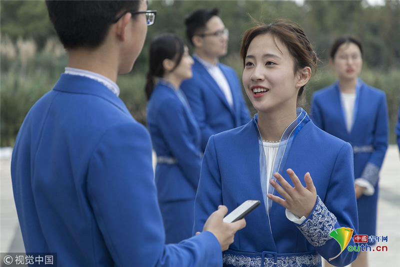 2018年11月5日,浙江嘉興,大會志愿者“小梧桐”爭分奪秒,在烏鎮展開緊張的實戰培訓。阿凡提達/視覺中國