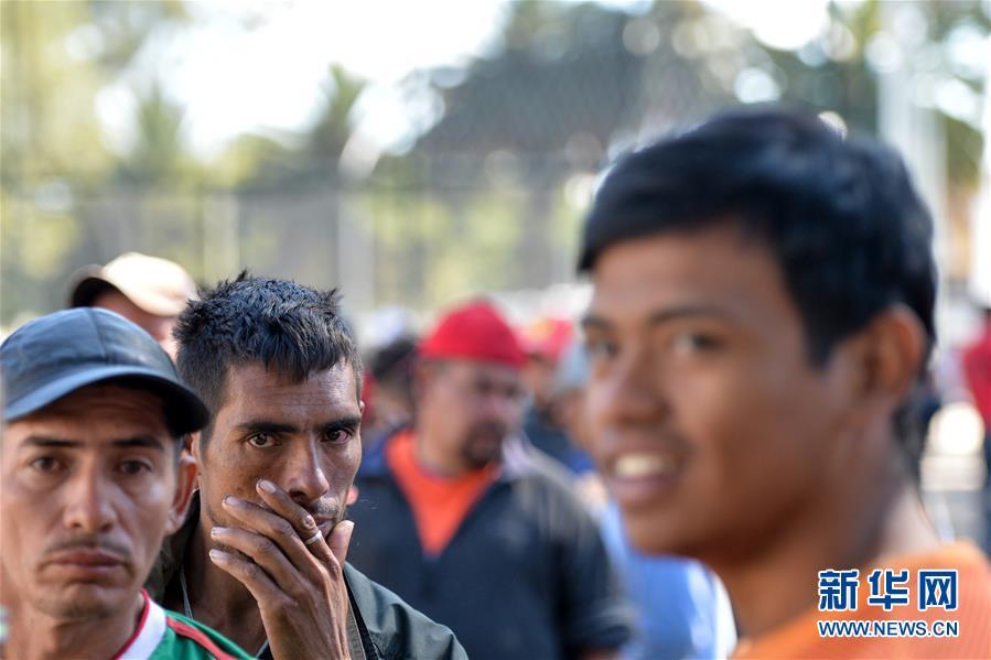 11月5日,在墨西哥首都墨西哥城,中美洲移民在臨時安置點外排隊。新華社記者辛悅衛 攝