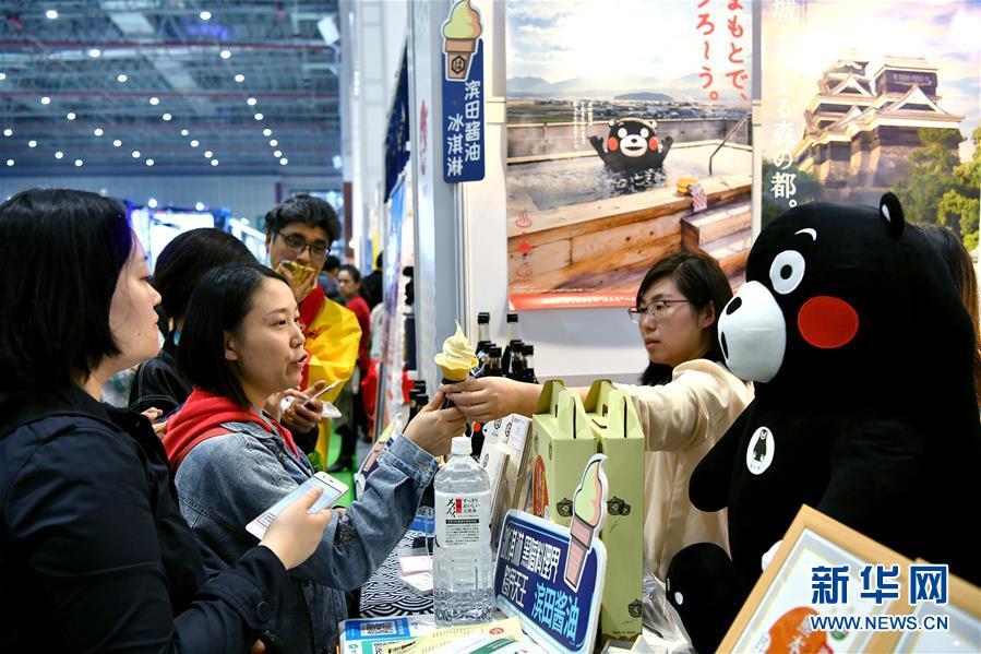 11月7日,觀眾在日本濱田醬油株式會社展臺品嘗醬油冰淇淋。 新華社記者 李鑫 攝