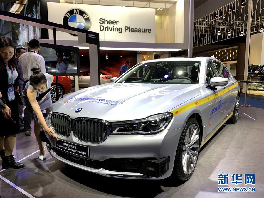 這是11月7日在汽車展區拍攝的配備L4級自動駕駛技術的寶馬7系測試車。新華社記者 牛曉雷 攝