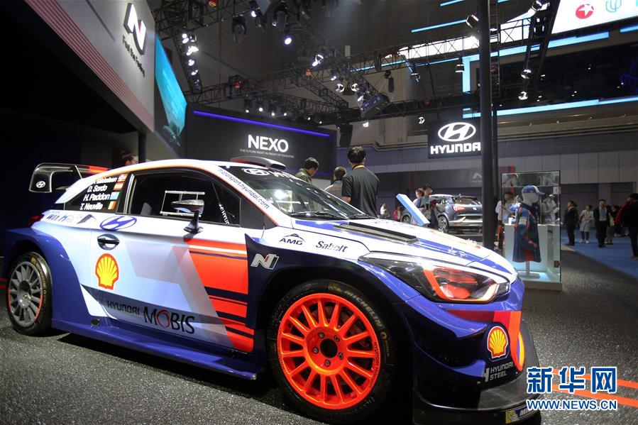 這是11月7日在現代展位拍攝的i20 WRC賽車。新華社記者 張譽東 攝