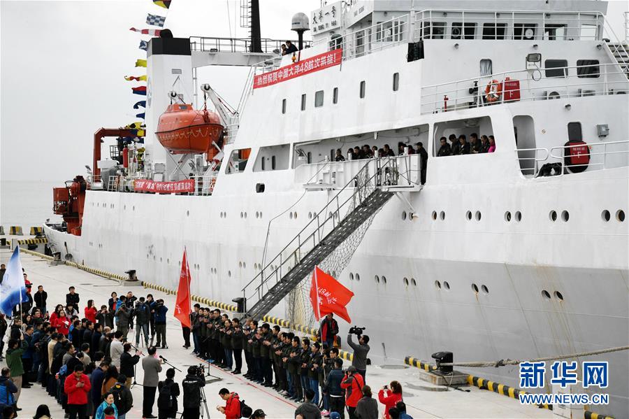 11月7日,青島海洋科學(xué)考察基地碼頭舉行凱旋儀式,迎接完成中國大洋48航次任務(wù)的科考隊(duì)員。 新華社記者 李紫恒 攝