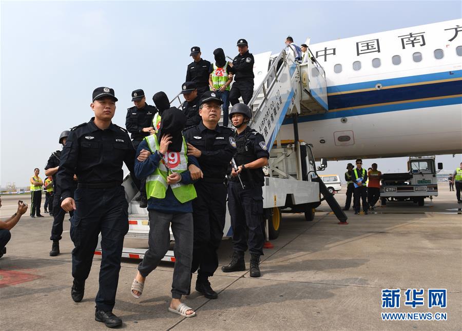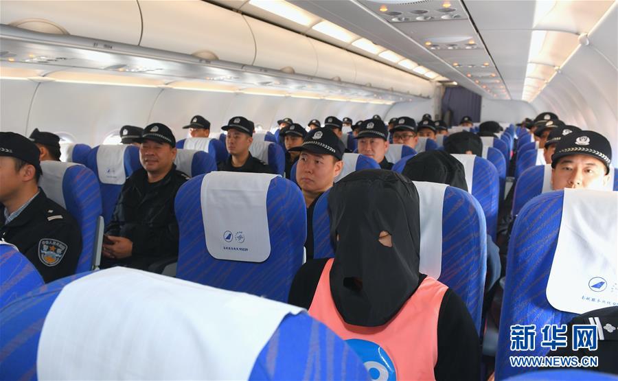 11月7日,涉及到吉林部分網絡詐騙案件的14名犯罪嫌疑人繼續乘坐包機被押解回吉林接受處理。新華社記者毛思倩攝